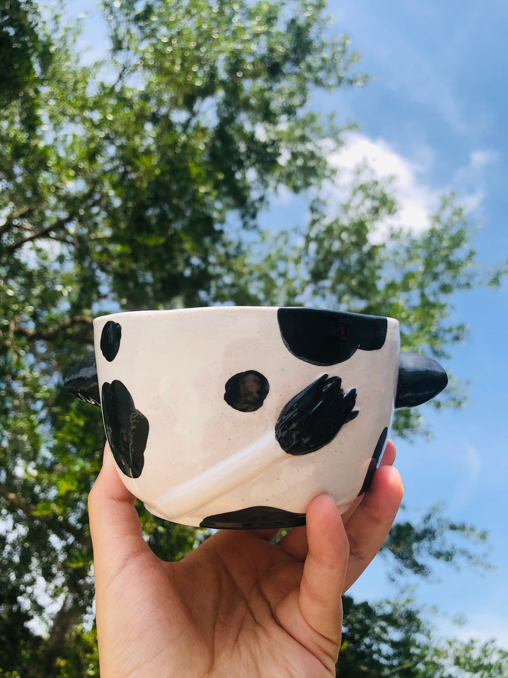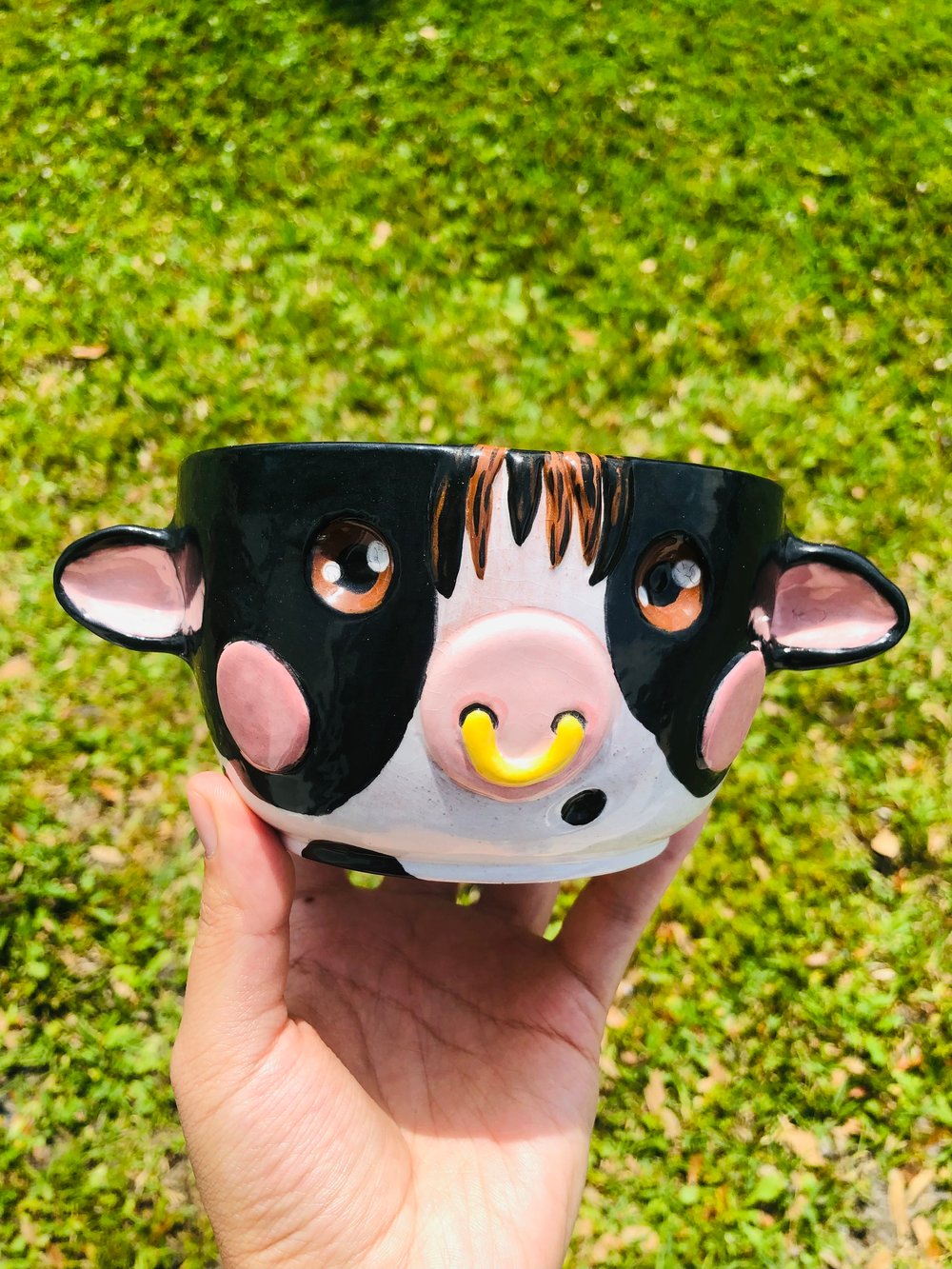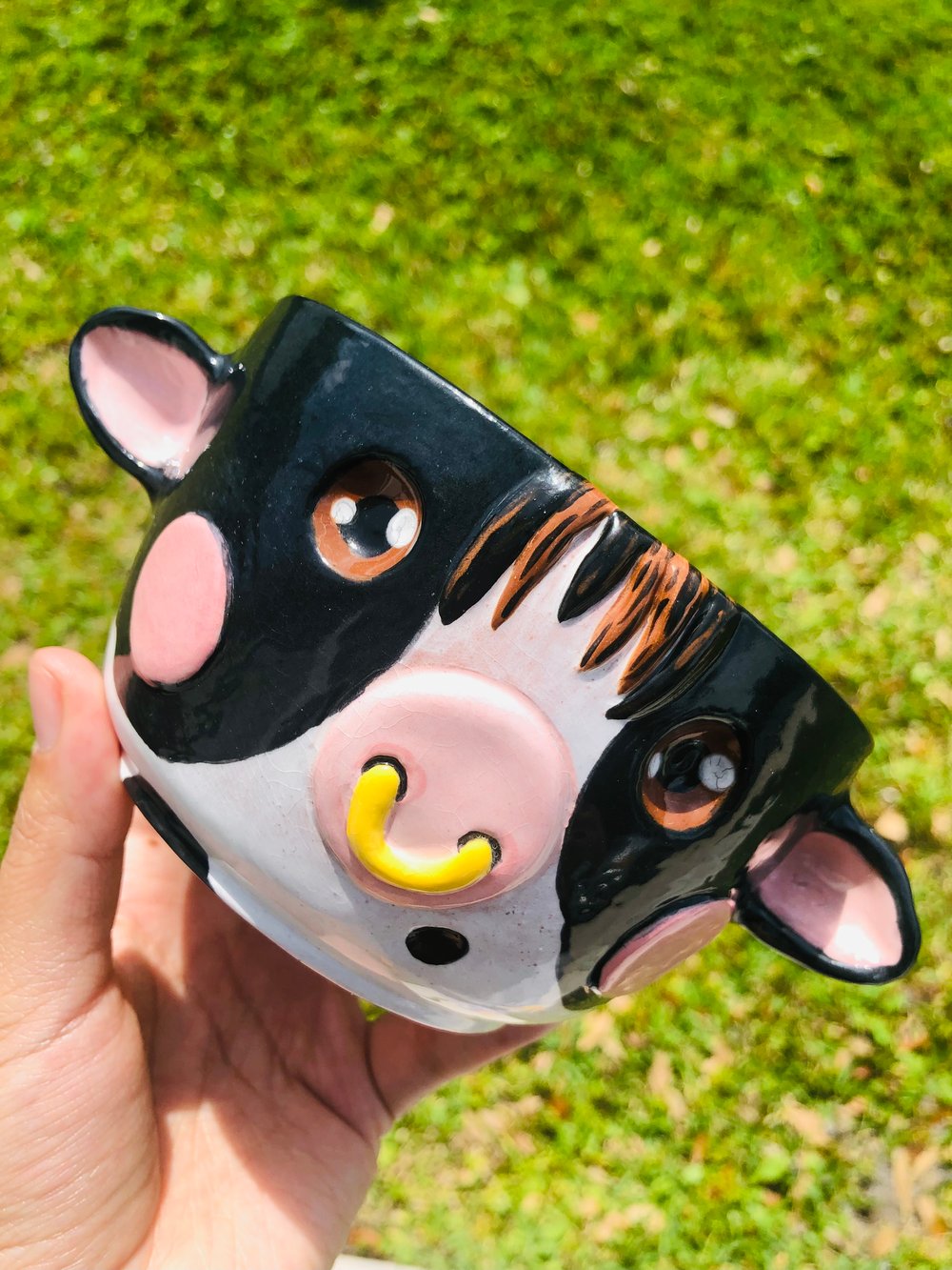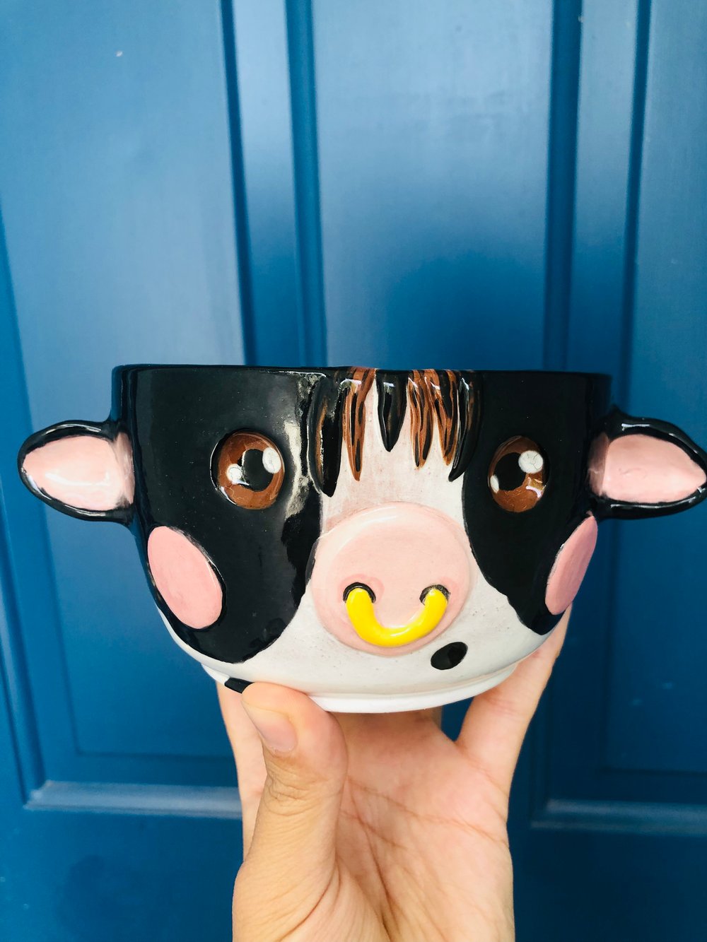 Hello! This Cow Bowl been hand-painted and hand-built by me, from red earthenware clay.